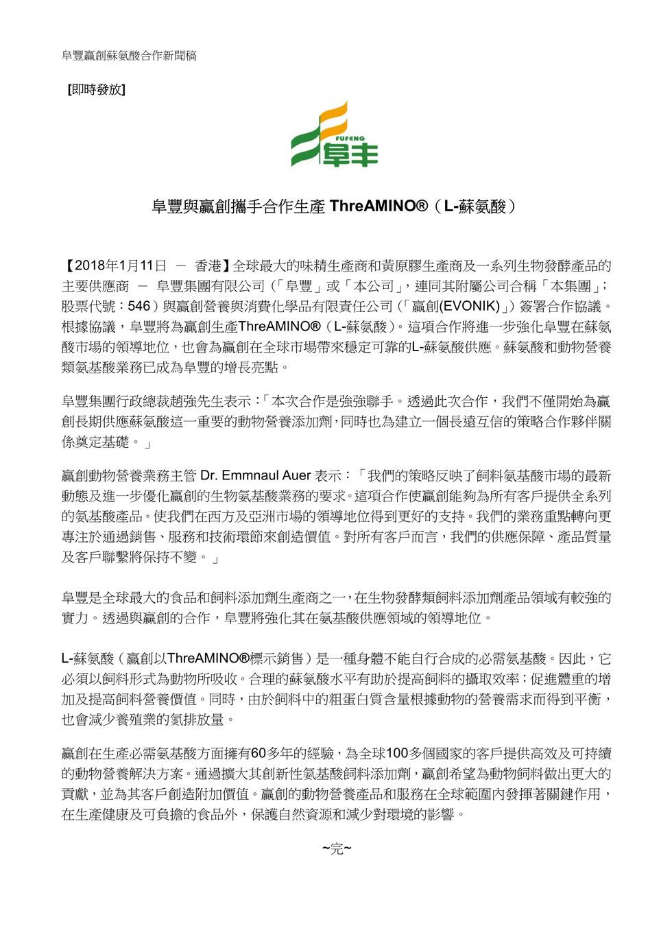 开云网页版·官方版在线登入 -开云(中国)与赢创携手合作生产ThreAMINO®(L-苏氨酸)